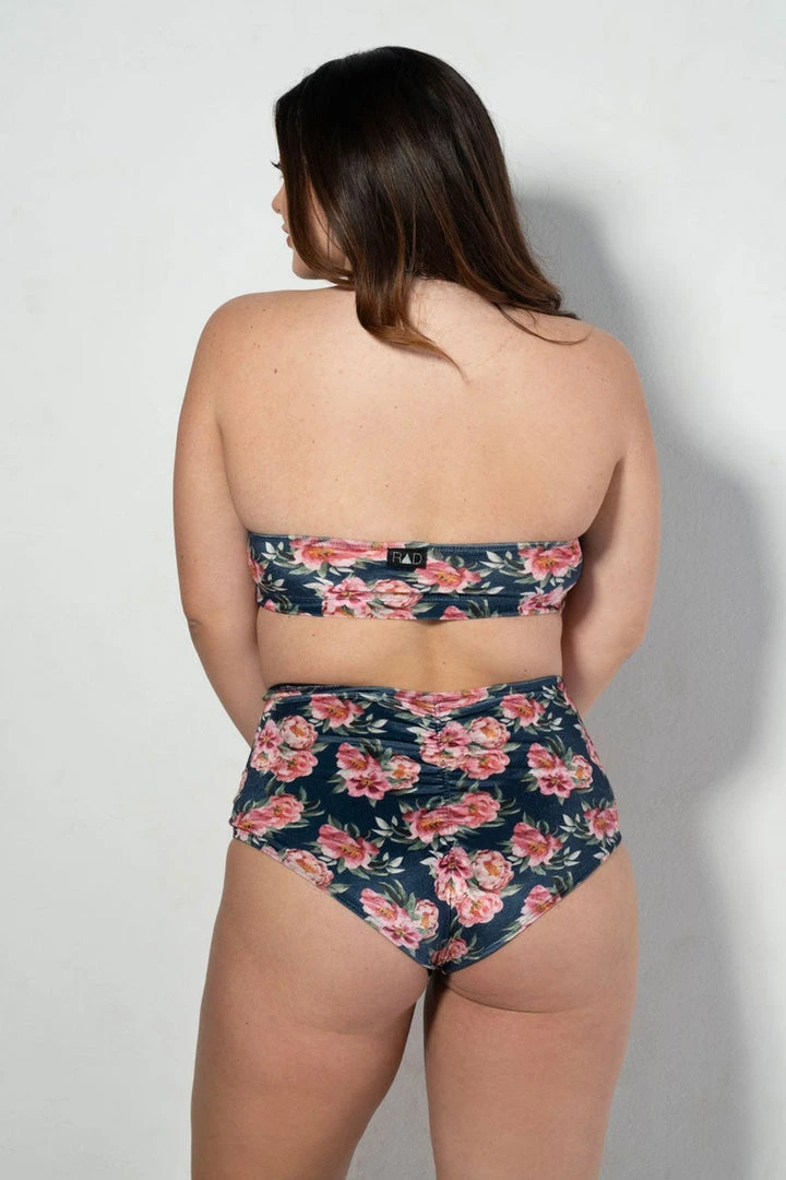 The Eve Velvet Peony top will have you with both feet still in spring dreaming of warmer weather. It is designed in this creamy velvet fabric with a bold floral print. The Eve top commits to deliver full coverage, complete with an open back and high neck.