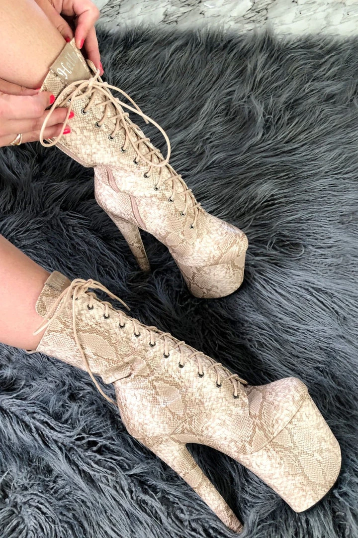 Introducing Hella Heels – a new brand of shoe on the block. Platforms are developed for a strong point and sleek lines as you dance, and platform fabrics are stitched to last longer and look slicker. Lower eyelets are spread out slightly more than further up for an arched aesthetic. Pull tab and tongue tab detailing in a luxe faux suede.