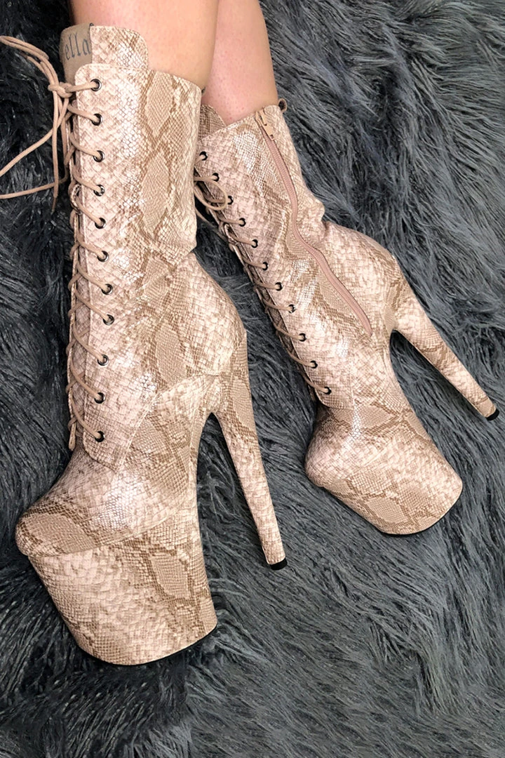 The snakeskin material will scuff with floorwork so we recommend you buy some exotique shoe protectors. You can barely tell you are wearing them and they will protect your toe boxes and platforms.