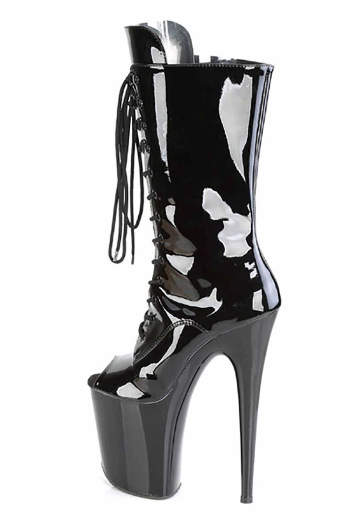 - Patent Black Platform Lace-Up Front Ankle Boot, Inside Zip Closure