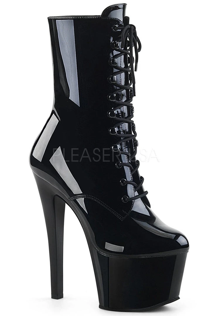 - Patent Black Platform Lace-Up Front Ankle Boot, Inside Zip Closure