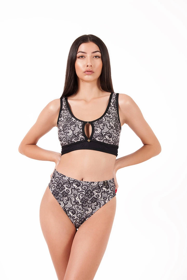 This scoop neck top featuring a mesh underbust band and keyhole cutout is going to make your look glorious without compromising on support and coverage. The skinny cross over back straps are our favourite design feature.
