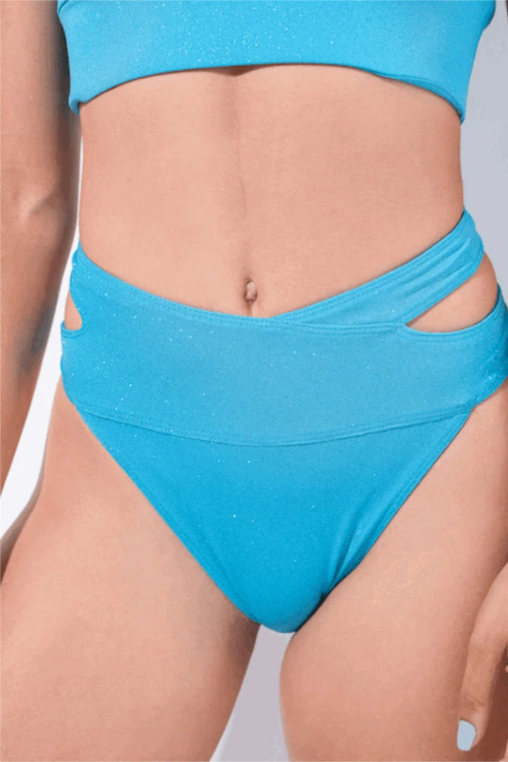 Made of lurex fabric, it is high waisted, with a high leg, side cut outs and scrunch bum. We simply cannot think of a reason not to make it yours! Now available in a stunning Ciel Glitter.