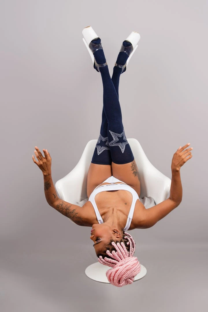 Escape from this crazy world and dance with the stars. Navy socks with white star design.