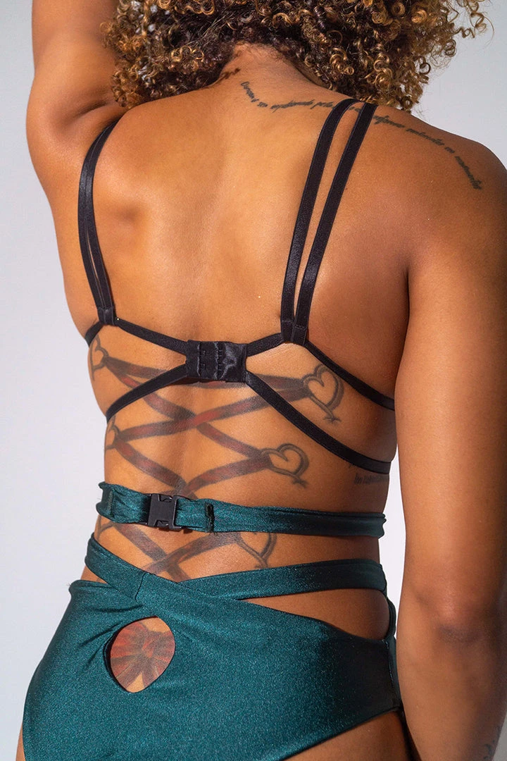 Strappy top with cut out details. Fastens with a bra style fastener at the back and is fully adjustable. Complete the look with the Wild Shorts.
